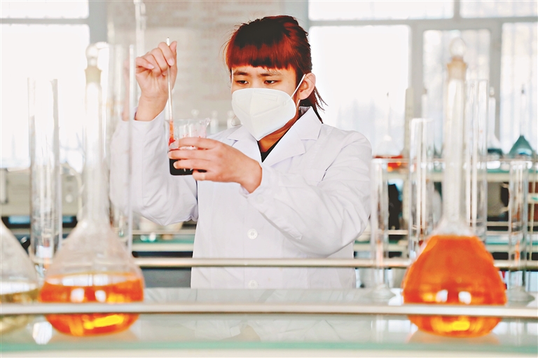八五一一農(nóng)場有限公司技術人員化驗土樣。崔倫震攝