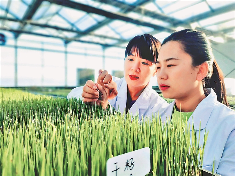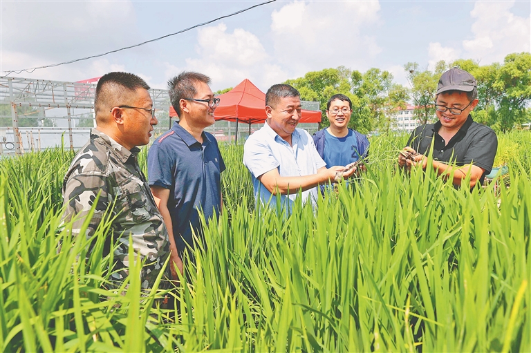 黑龍江省農(nóng)墾科學院水稻研究所的專家們在徐一戎水稻科技園區(qū)工作。 王亞光攝