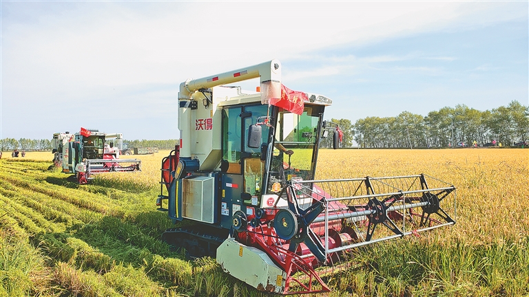 水稻收獲現(xiàn)場。荊典攝