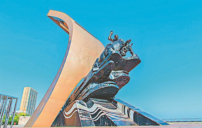 知青廣場(chǎng)標(biāo)志性雕塑拓荒牛。