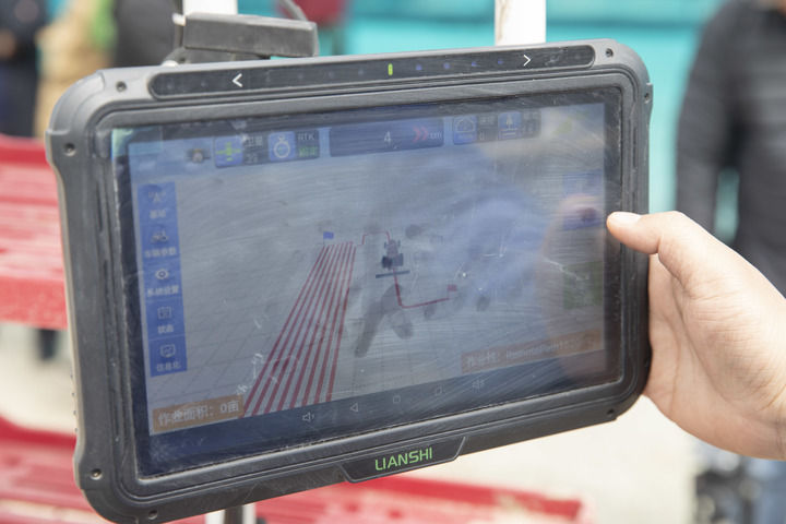 2021年5月11日,在北大荒集團紅衛(wèi)農場有限公司,工作人員設置無人駕駛插秧機工作路徑。新華社記者 張濤 攝