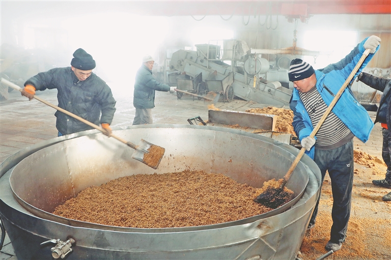 綠谷酒業(yè)的釀酒師傅正在制酒曲。本版圖片均由富錦市委宣傳部提供