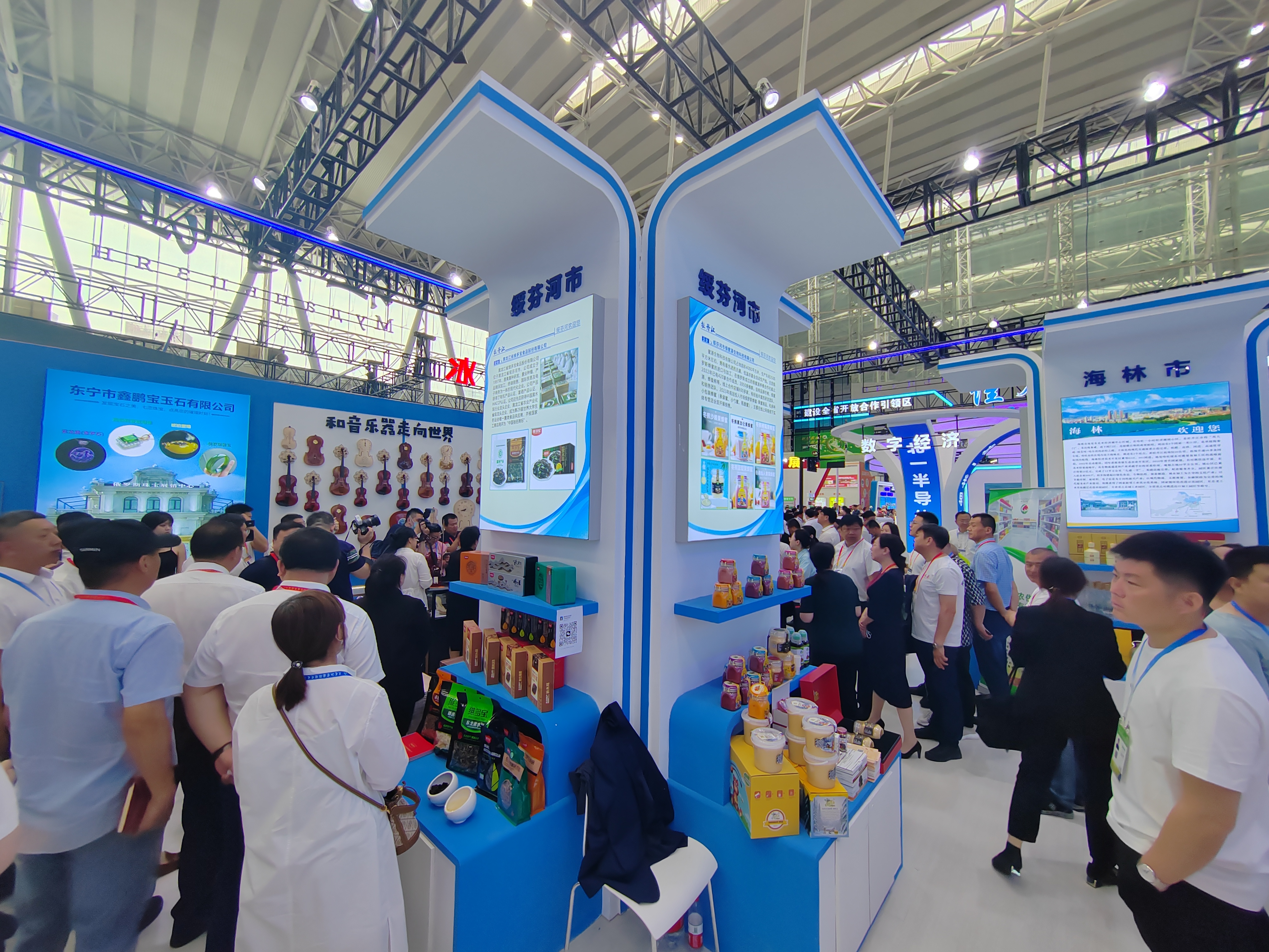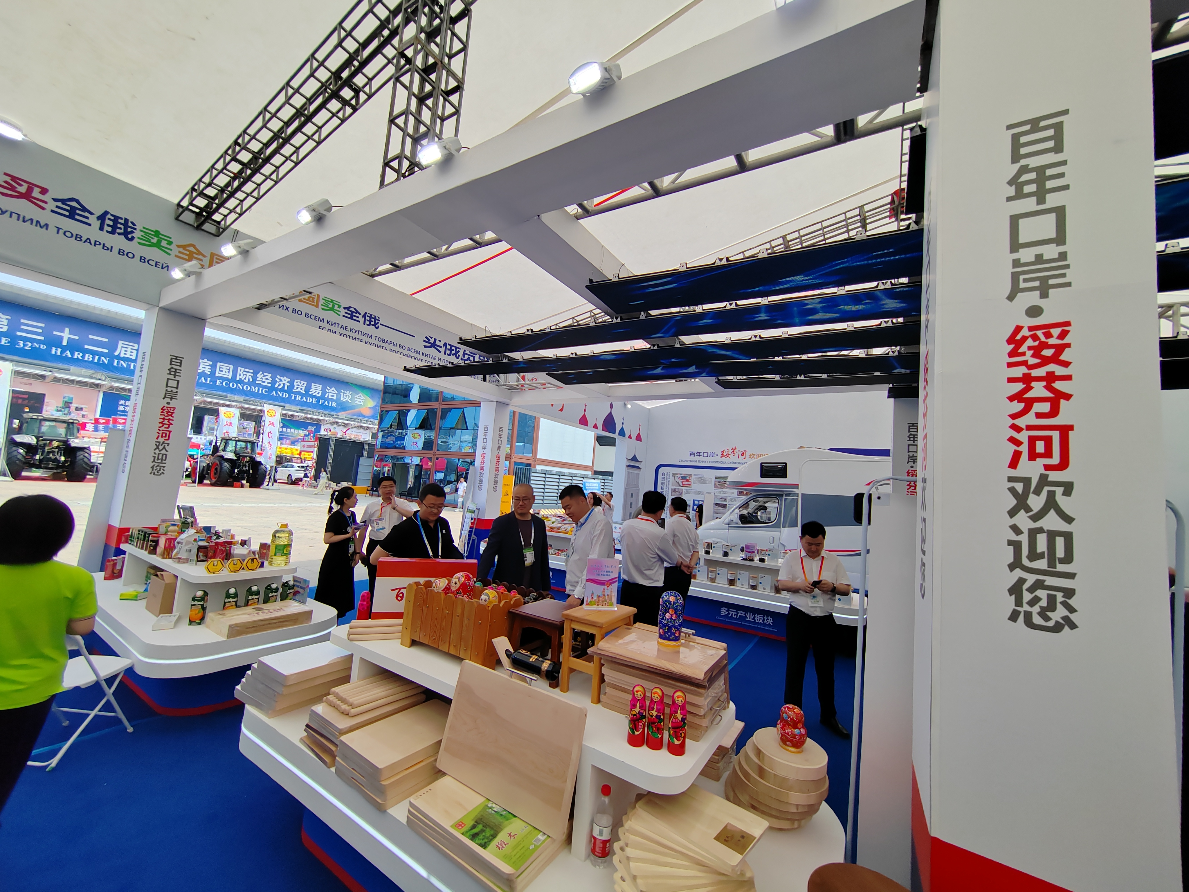 本屆哈洽會,綏芬河市展覽總面積約310平方米,包括牡丹江展廳綏芬河展區(qū)、室外展區(qū)綏芬河市獨立特裝展廳以及中俄項目推介對接交流會會場標(biāo)變展位。綏芬河共組織80家企業(yè)參展,展品囊括酒水飲料、休閑食品、日化用品、木材、糧食等十余大類150多個品種。