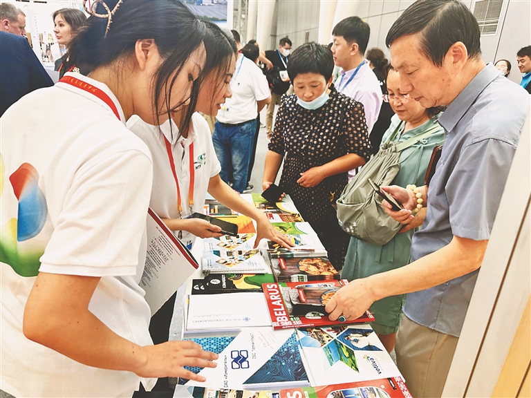 “白俄羅斯地處歐洲中心,是奶粉生產(chǎn)大國(guó)之一,而中國(guó)有巨大的乳制品消費(fèi)市場(chǎng),隨著國(guó)家‘一帶一路’建設(shè)的推進(jìn),我們也希望,能有越來(lái)越多產(chǎn)品進(jìn)入中國(guó)市場(chǎng)?!卑锥砹_斯展館的品牌授權(quán)經(jīng)銷商李永修介紹。