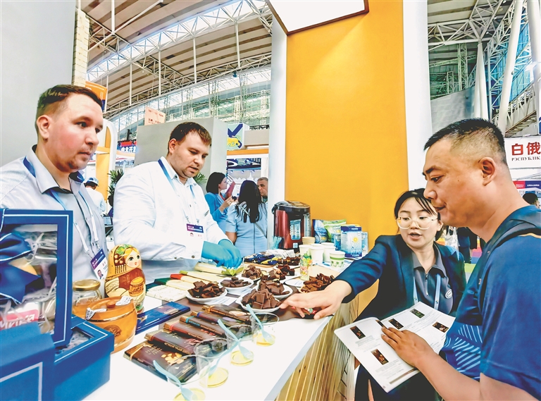 滿滿國(guó)際范,展會(huì)搭橋擴(kuò)展朋友圈。韓國(guó)的化妝品、俄羅斯的糖果、日本的小家電、巴基斯坦的針織物、泰國(guó)的美味零食、法國(guó)的紅酒、越南的咖啡……走進(jìn)哈洽會(huì)展館A廳的港澳臺(tái)及國(guó)際展區(qū),滿滿的國(guó)際范再次向世界展示哈洽會(huì)作為國(guó)際展會(huì)的吸引力。