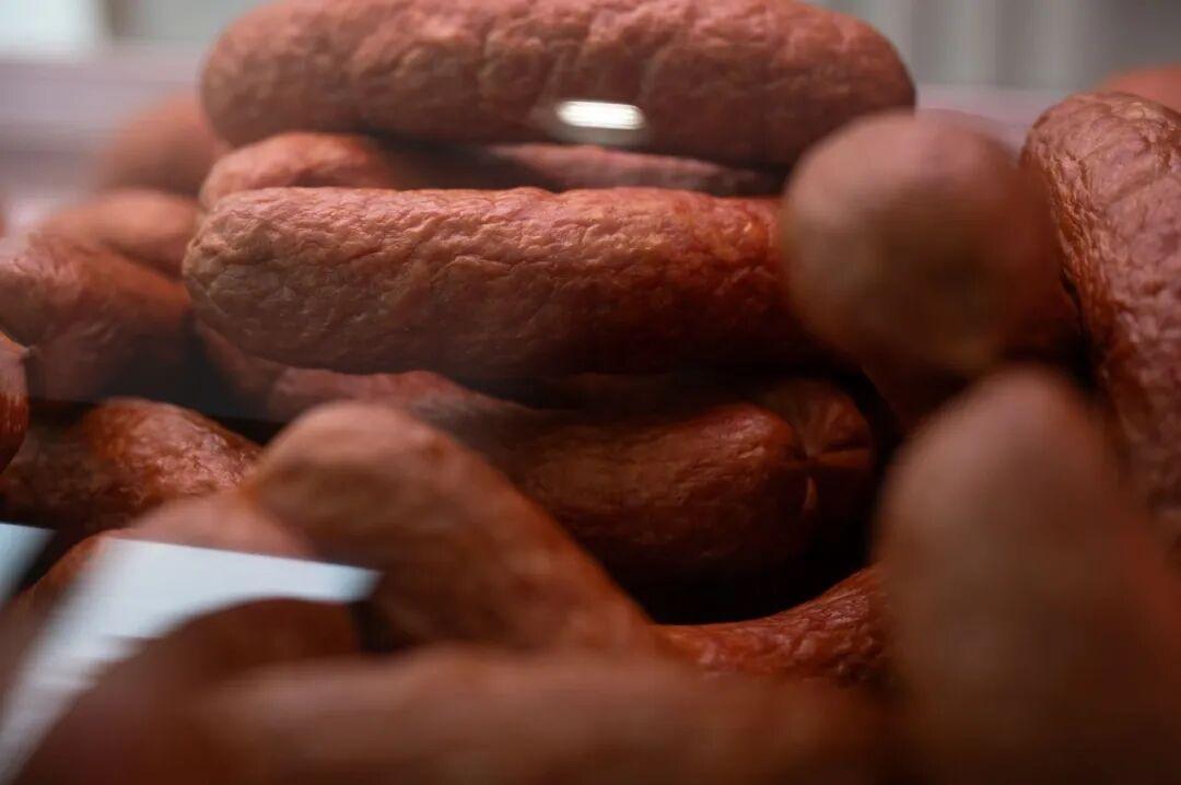 而在門店后方的生產(chǎn)車間,煙火氣正濃,機(jī)器的轟鳴聲與工人的忙碌身影交織,一派熱火朝天的保供景象?!傲璩块_工,一干就是一天,從天黑干到天黑是常態(tài)?!避囬g主任謝婷擦了擦額頭的汗,這位在崗位上堅(jiān)守17年的老員工,對每一道工序都熟稔于心。她告訴記者,為了讓大家吃上新鮮的紅腸,車間始終堅(jiān)持用料扎實(shí),甄選正規(guī)廠家大品牌鮮肉為原料,如今每日產(chǎn)量達(dá)10萬多根,用實(shí)打?qū)嵉漠a(chǎn)能扛起春節(jié)保供的責(zé)任。