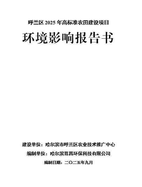 呼蘭區(qū)2025年高標(biāo)準(zhǔn)農(nóng)田建設(shè)項(xiàng)目環(huán)境影響報(bào)告書(shū)及公眾參與說(shuō)明