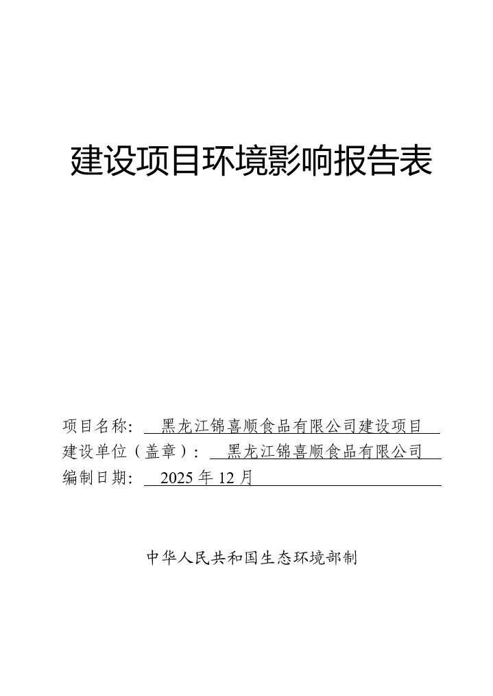 黑龍江錦喜順食品有限公司建設(shè)項目環(huán)境影響報告表
